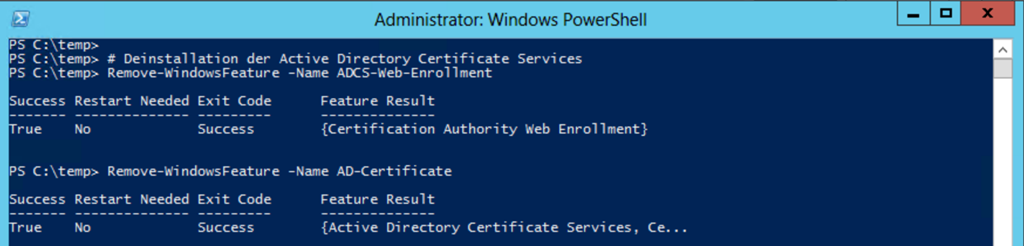 Remove-WindowsFeature -Name AD-Certificate