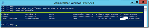 # Anzeige von offenen Dateien über die SMB-Shares auf dem noch aktuellen Domain-Controller