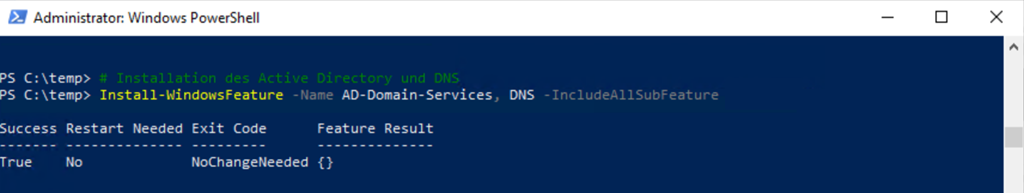 Mit Install-WindowsFeature muss auf dem Member-Server sowohl das Active-Directory als auch der DNS installiert werden, was in einem Schritt möglich ist.