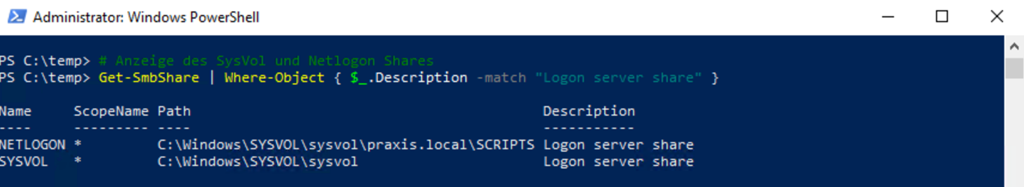# Anzeige des SysVol und Netlogon Shares
