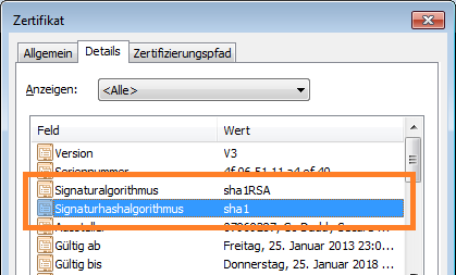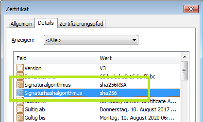 … und haben auch ein neues Zertifikat mit sha2 als Hashalgorithmus.